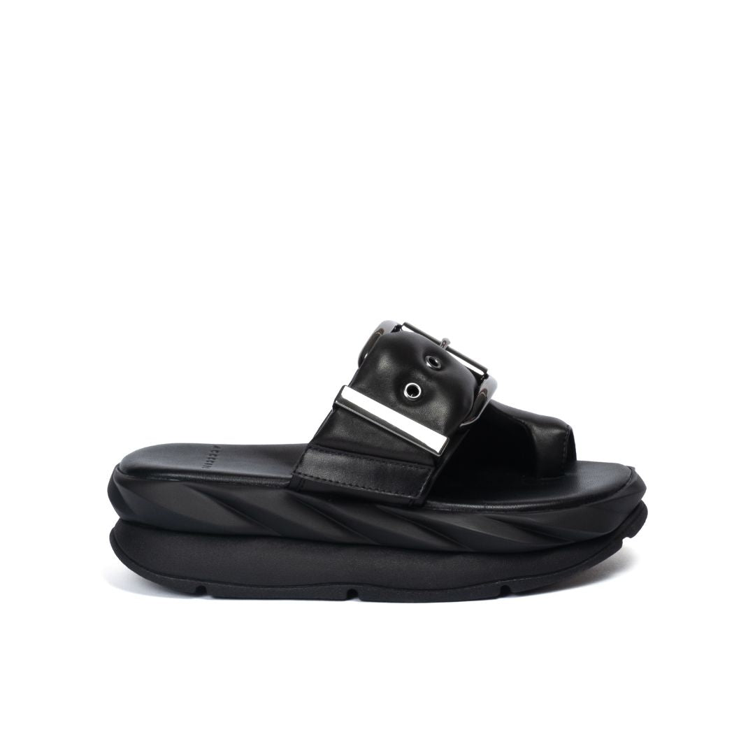 4CCCCEES Mellow Glow Gun Metal Klapki Damskie Na Platformie Czarne