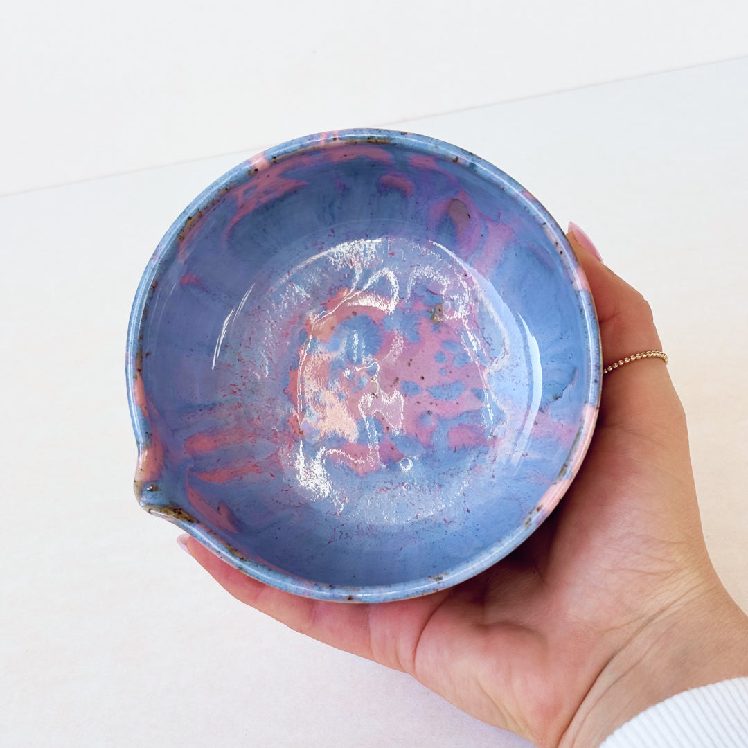 Podczas pracy nad projektem wspólnie dopracowywaliśmy kształt naczynia, tak aby było nie tylko piękne, ale też funkcjonalne. Delikatny dziubek ułatwia przelewanie, a harmonijnie wyprofilowane ścianki zapewniają wygodne mieszanie matchy chasenem.