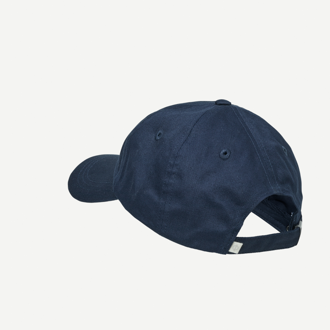 Czapka unisex typu baseball o klasycznym kroju. Z tyłu regulacja na metalowy zatrzask z wygrawerowanym logo, u góry otwory wentylacyjne. Na froncie haftowane logo Samsøe Samsøe. Wykonana w 100% z bawełny organicznej.