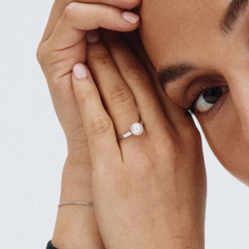 Ponadczasowa kolekcja Gabrielle łączy łańcuszki i koraliki, tworząc jasny, nowoczesny efekt. W tym wyjątkowym pierścionku delikatny koralik z masy perłowej jest subtelnie osadzony w obrączce.