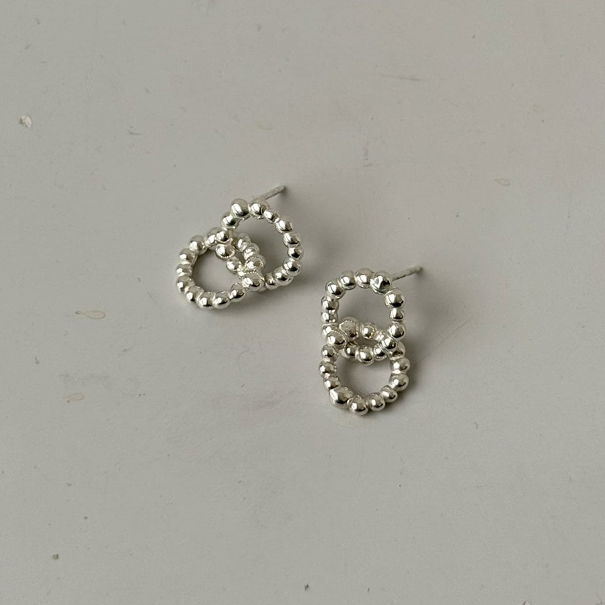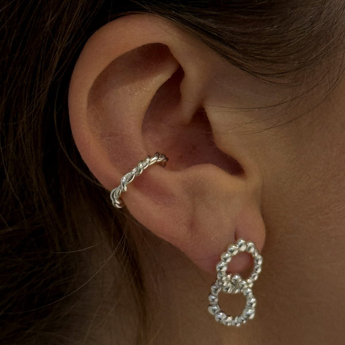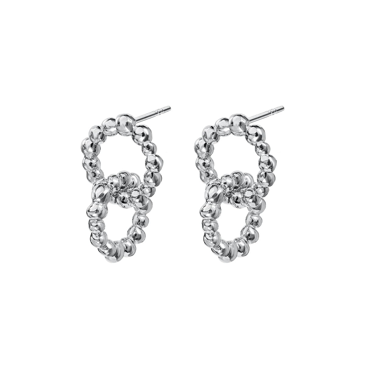 Kolczyki Maar Together to dwa połączone kółeczka w kształcie srebrnych bąbelków. Pasują do innych produktów Maar z tej serii. Wykonane ręczne ze srebra próby 925.