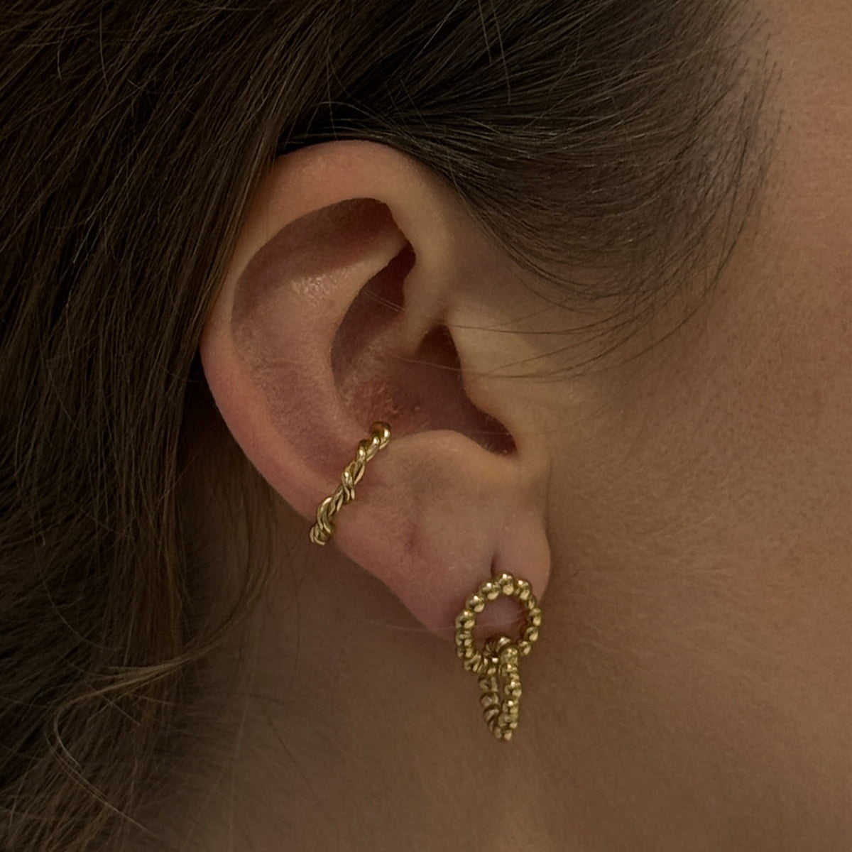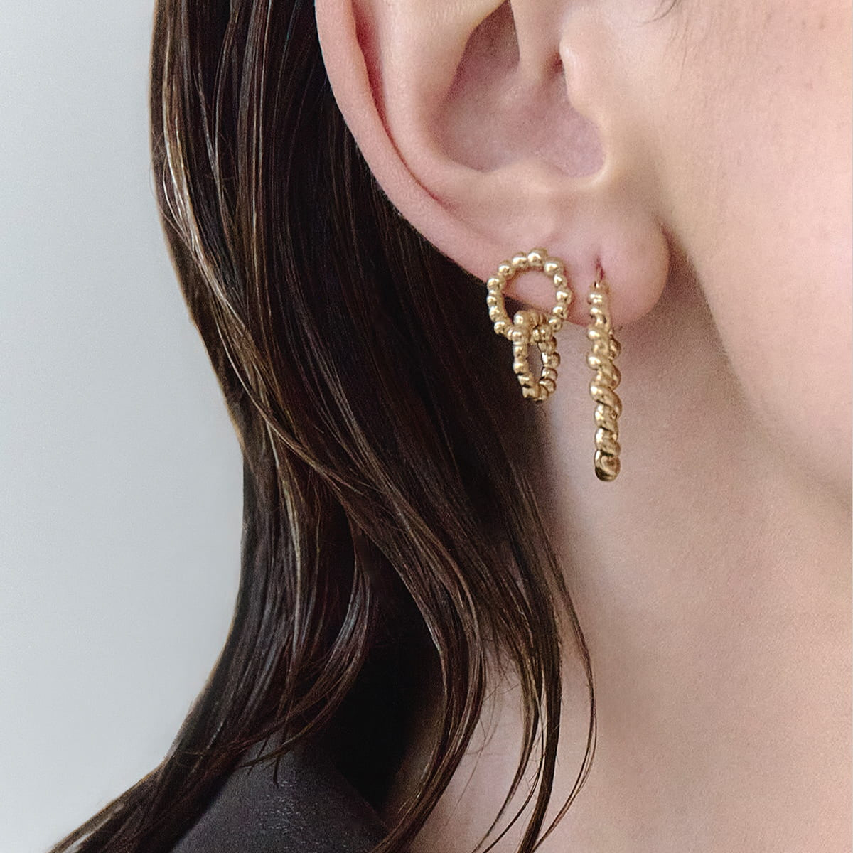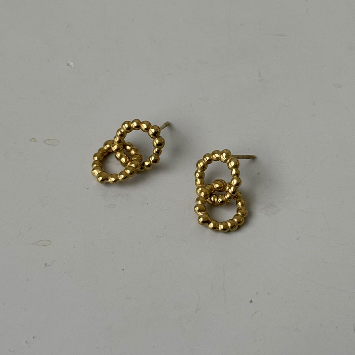 Kolczyki Maar Together to dwa połączone kółeczka w kształcie srebrnych bąbelków. Pasują do innych produktów Maar z tej serii. Wykonane ręczne ze srebra próby 925, pokryte dwumikronową warstwą 24-karatowego złota.