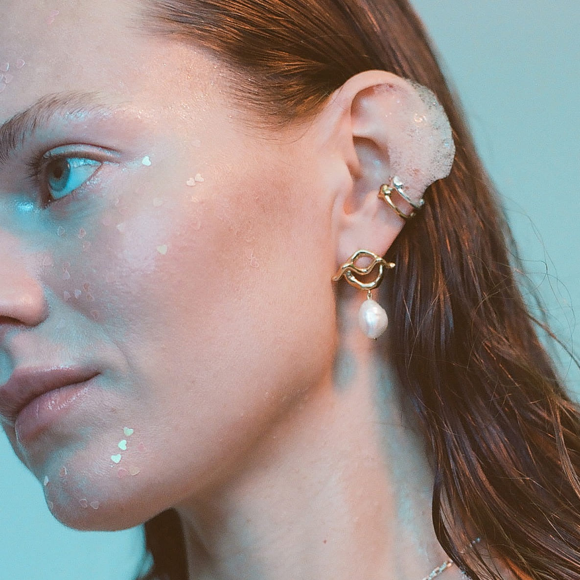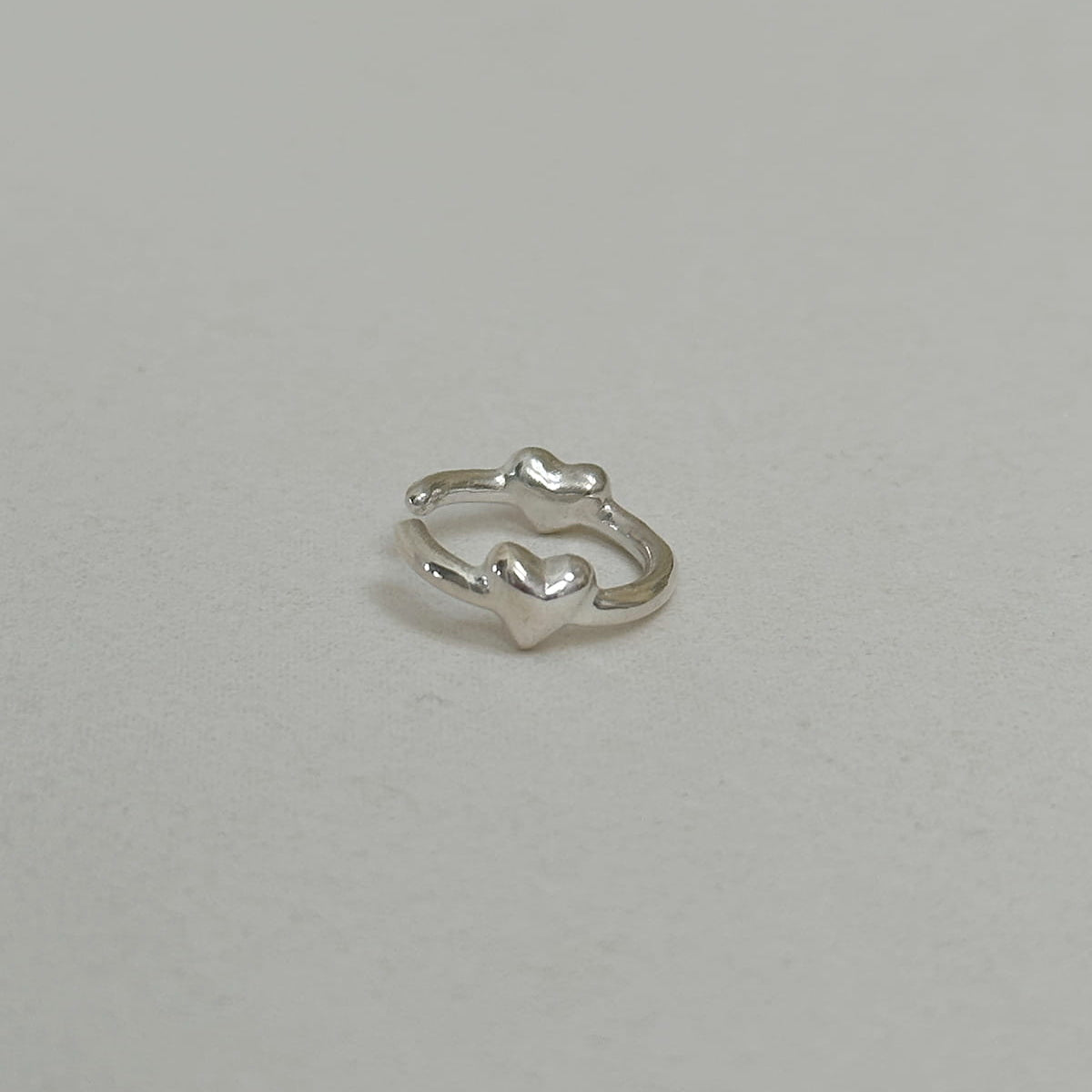 Mała nausznica wykona ze srebrnego drutu i ozdobiona dwoma serduszkami (tak, żeby można ją było nosić i na prawym i na lewym uchu).