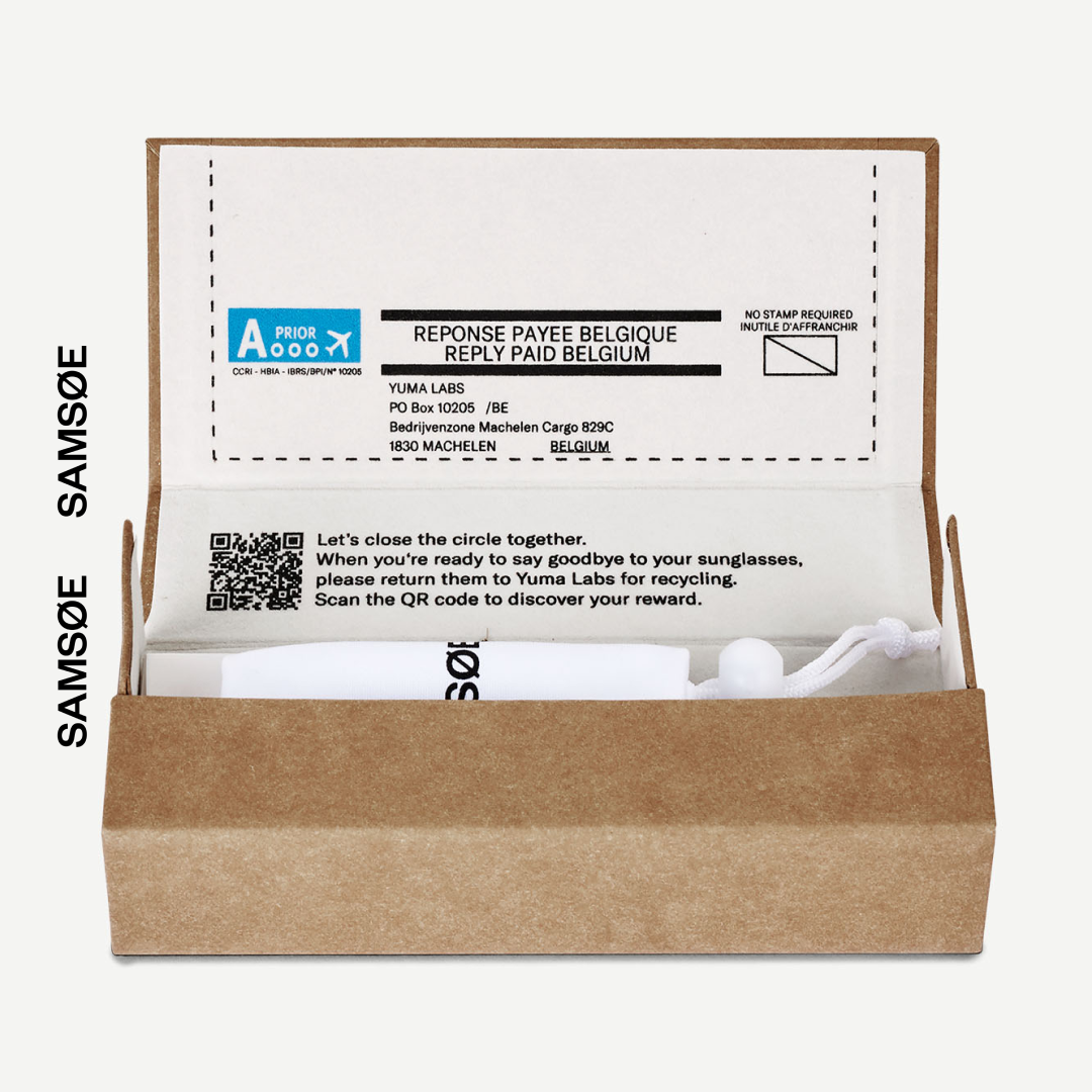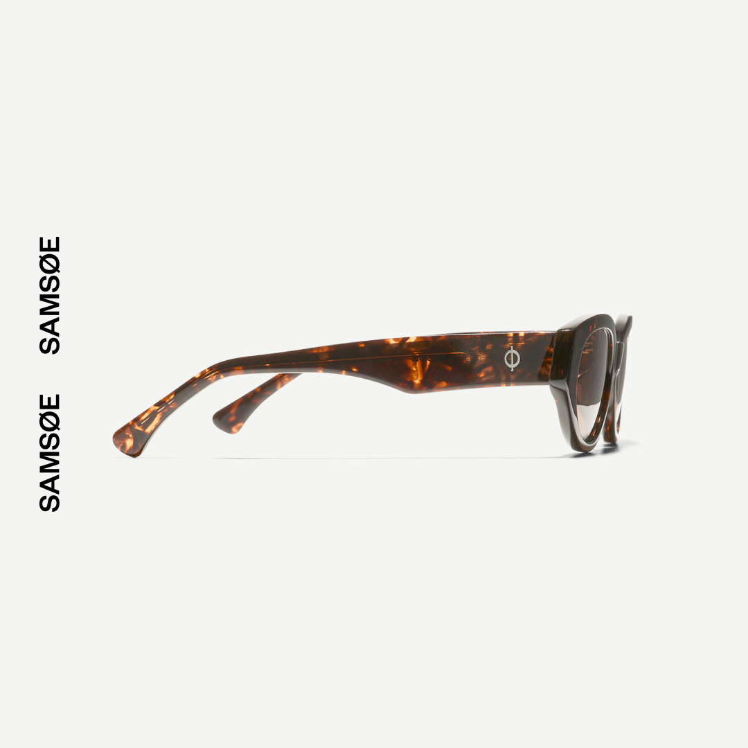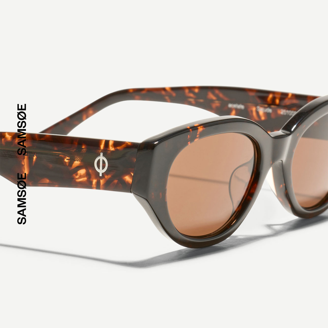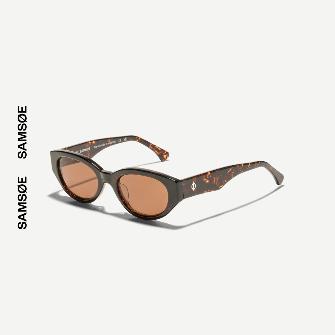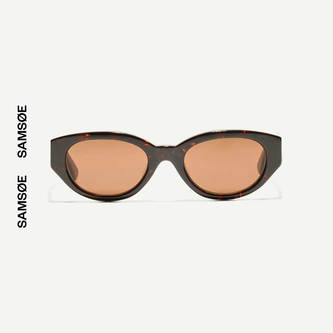 Unisexowe okulary przeciwsłoneczne o owalnym kształcie i przyciemnianych soczewkach. Szeroka oprawka została wykonana w 100% z acetatu z serii Renew (częściowo z recyklingu), a na zausznikach znajduje się subtelne logo ø. W zestawie etui oraz ściereczka z brandingiem Samsøe Samsøe.