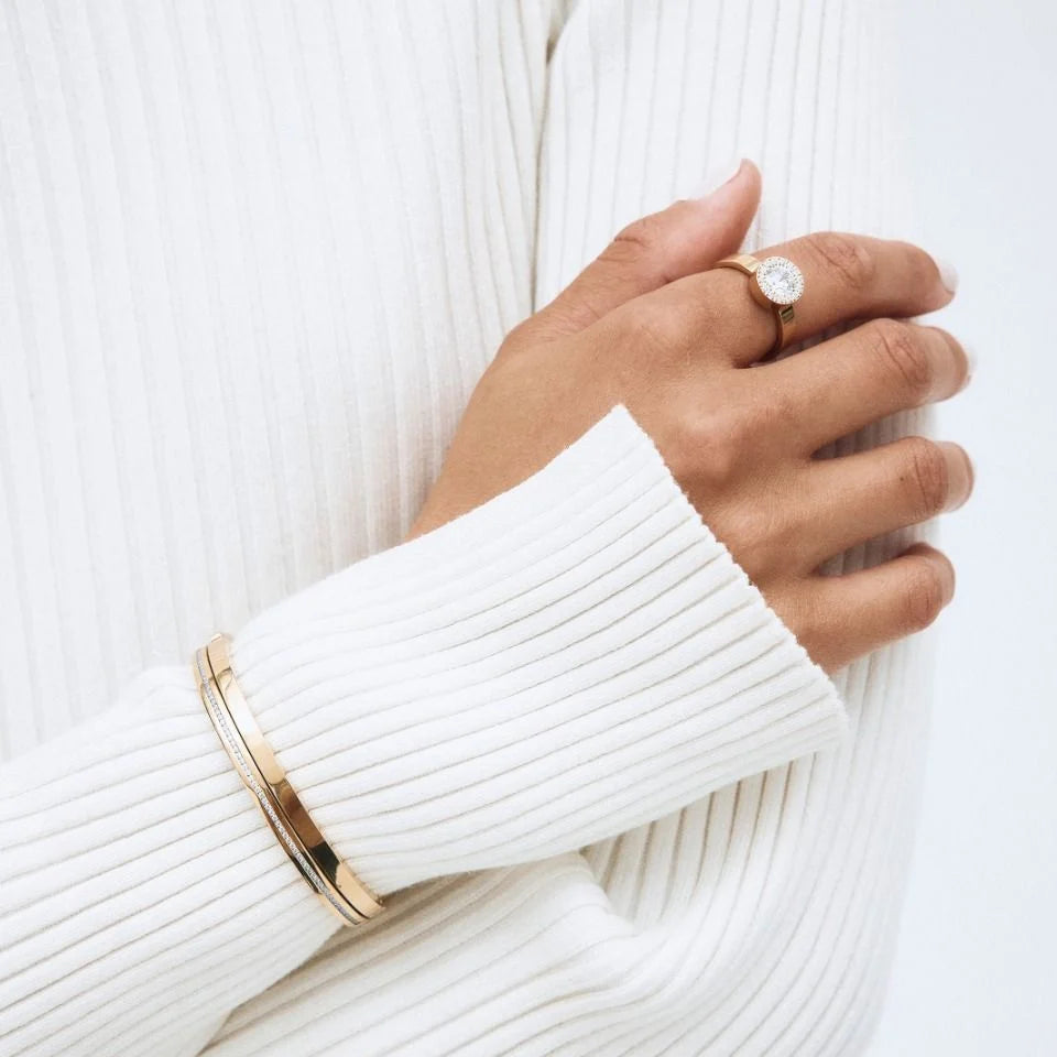 Materiał: Polerowana stal nierdzewna pokryta 14-karatowym złotem, Cyrkonia