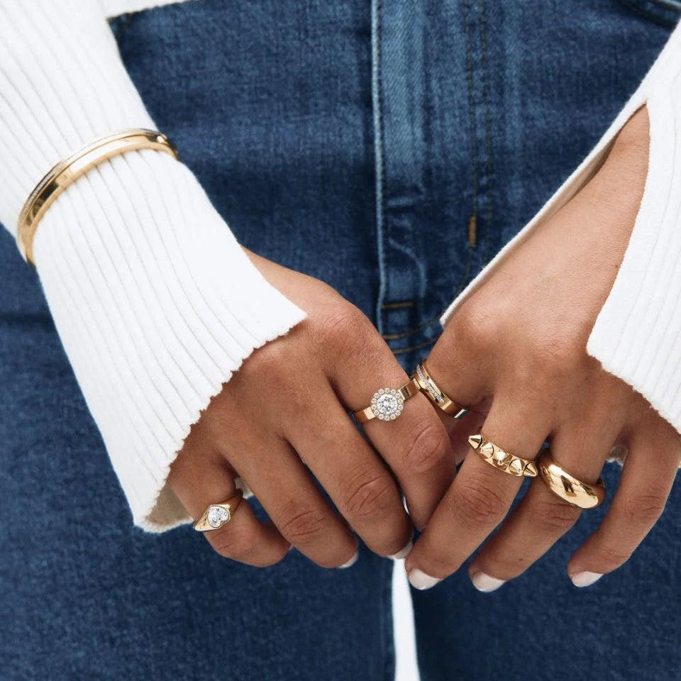 Thassos to jedna z najlepiej sprzedających się linii, obejmująca uniwersalne elementy, które doskonale sprawdzają się zarówno na co dzień, jak i przy wyjątkowych okazjach. Model wyróżnia się okrągłym elementem zdobionym jednym większym oraz czternastoma drobnymi, transparentnymi kamieniami, osadzonymi na błyszczącej, stalowej obrączce.