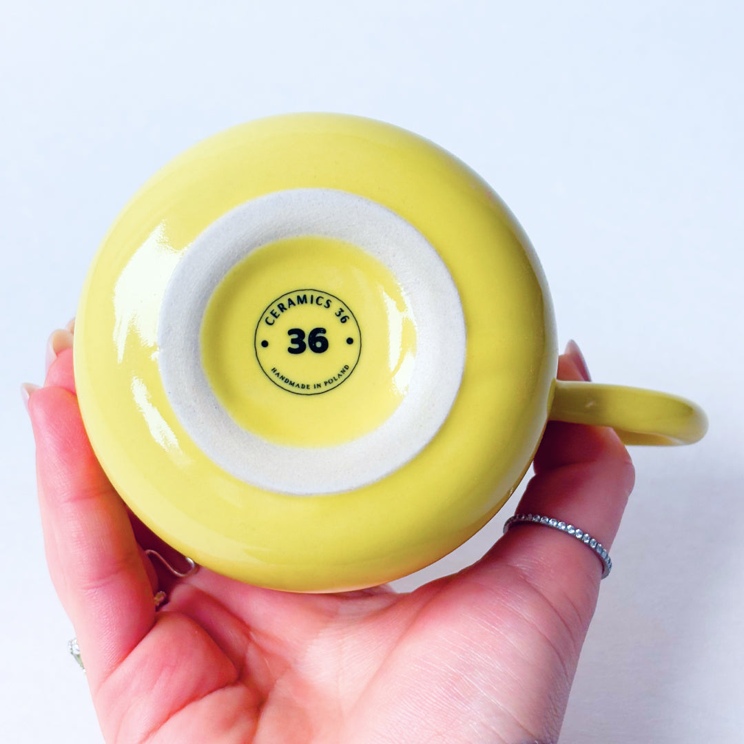 Ze względu na ręczne wykonanie na powierzchni mogą pojawić się subtelne nierówności czy drobne nakłucia w szkliwie. Nie są one wadą – stanowią naturalny ślad pracy ludzkich rąk, dzięki czemu każda filiżanka jest jedyna w swoim rodzaju.
