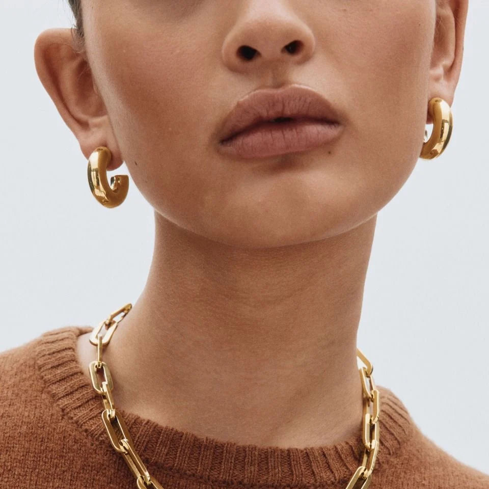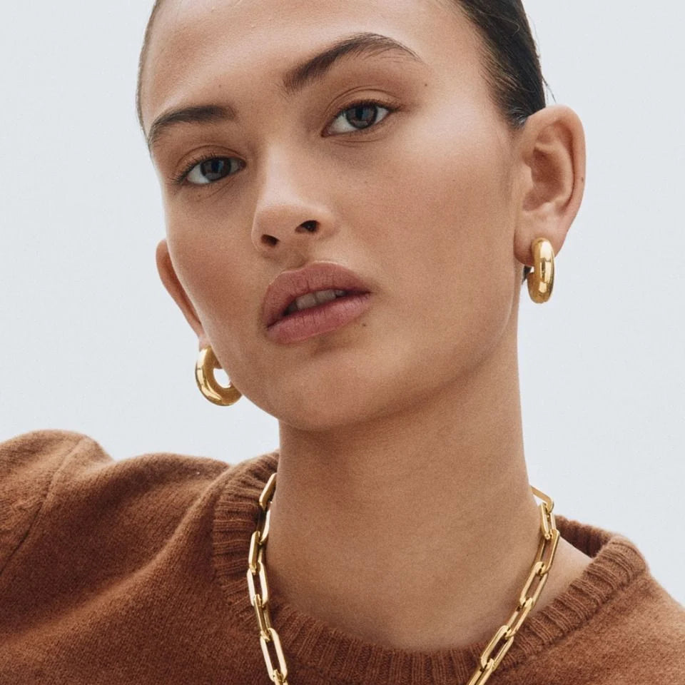 Kolczyki Chunky to modne, średniej wielkości koła o wyrazistej, pełniejszej formie – idealne na co dzień. Dzięki pustemu wnętrzu są lekkie i wygodne w noszeniu, zachowując przy tym efektowny wygląd. W tej wersji pokryte połyskującym 14-karatowym złotem.