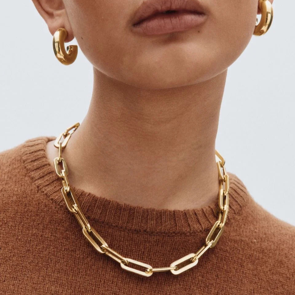 Naszyjnik Ivy Maxi to efektowna odsłona jednej z najbardziej rozpoznawalnych kolekcji. Duże ogniwa przyciągają wzrok i nadają całości wyrazistego charakteru. Model doskonale prezentuje się zarówno solo, jak i w zestawie z innymi łańcuchami i naszyjnikami, tworząc modny, warstwowy efekt. Zapięcie zostało subtelnie wkomponowane w jedno z ogniw. W tej wersji wykonany z polerowanej stali nierdzewnej pokrytej połyskującym 14-karatowym złotem.