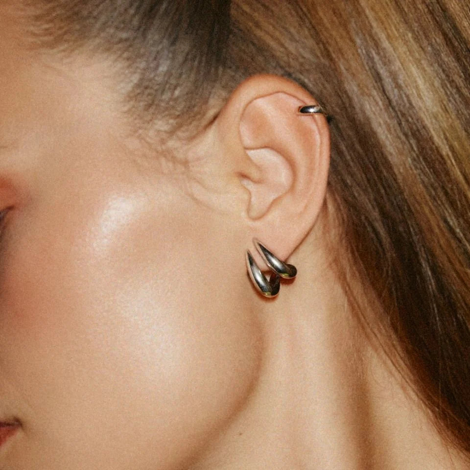 Seria Spire emanuje charakterem i wyrazistością. Kolczyki o chłodnej, pazurowej formie, wykonane z elementów stalowych, sprawiają wrażenie, jakbyś nosiła dwa kolczyki jednocześnie. Zestaw je z pierścionkiem z tej samej kolekcji, by dodać stylizacji odrobinę ostrego, nowoczesnego wyrazu.