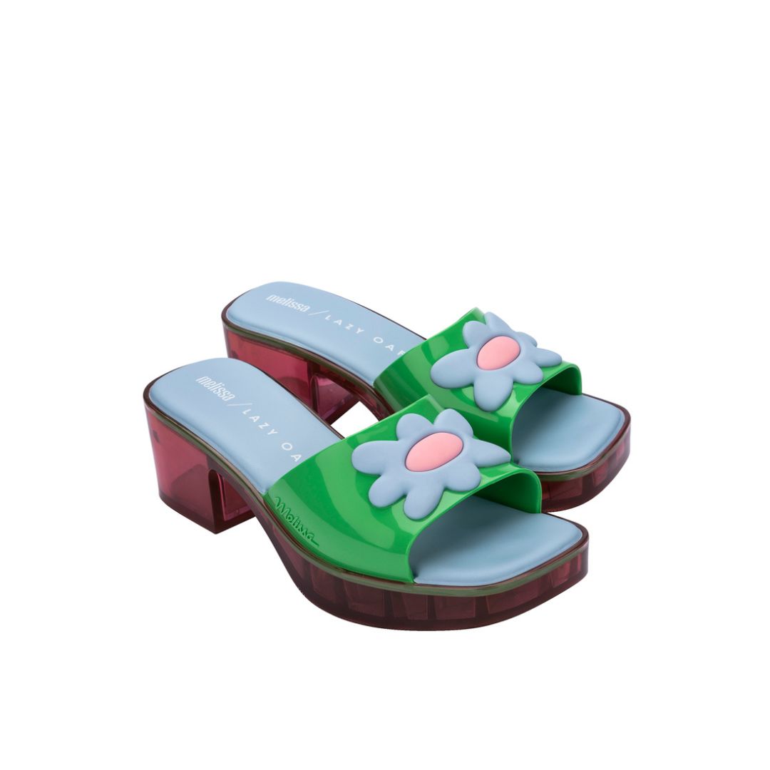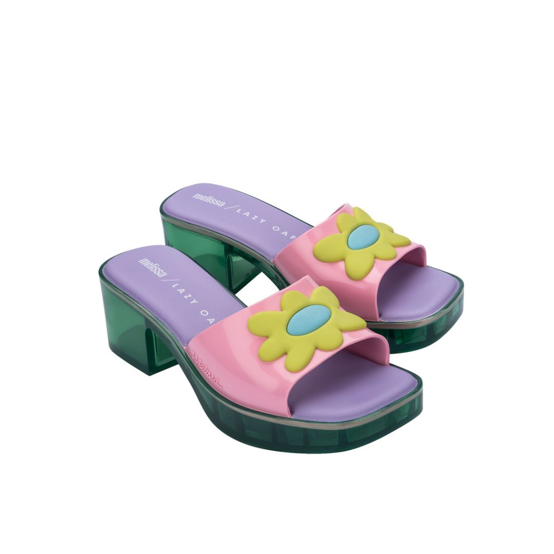 Melissa Shape + Lazy Oaf Ad Green Pink Lilac Klapki Na Obcasie Damskie Wielokolorowe