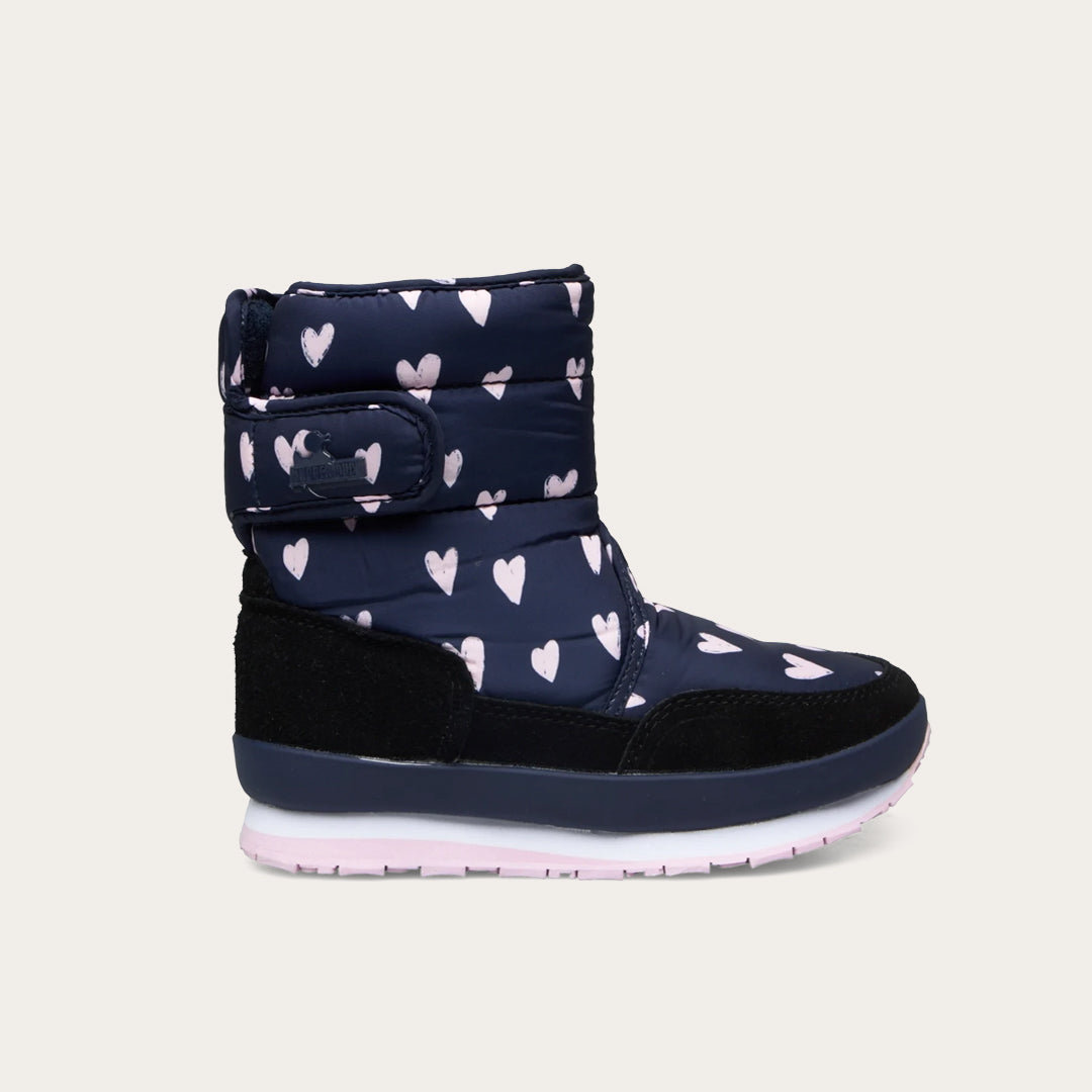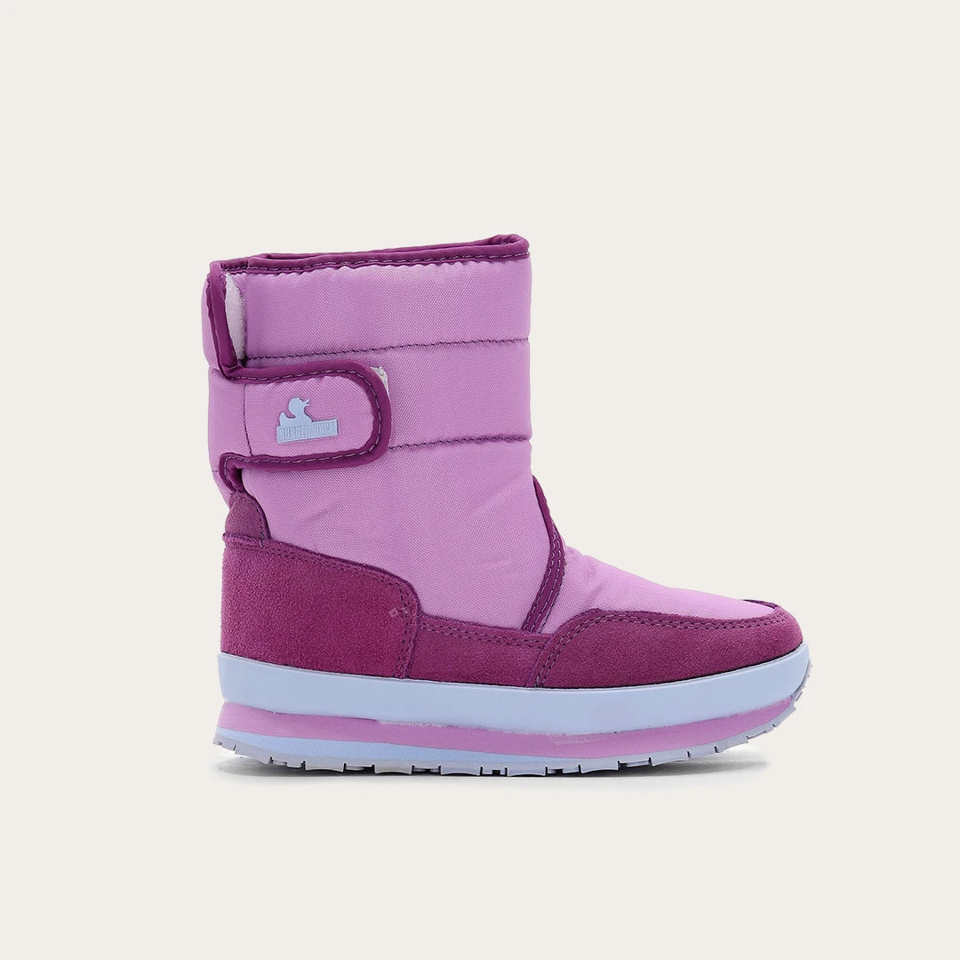 Klasyczne sneakerowe śniegowce dla dzieci i dorosłych. Ciepłe, wygodne i lekkie jak gumowa kaczuszka. To ten typ butów, który dzieci będą potrafiły nałożyć samodzielnie, a rodzice stworzyć zestawy #minime lub #likemotherlikedoughter, bo śniegowce dostępne są również w rozmiarach dla dorosłych. Rubber Duck to duńska marka, która wie co to chłód, deszcz i konieczność czucia komfortu. Dla nich liczą się funkcjonalne i wygodne buty, dlatego zimowe buty Rubber Duck to tak naprawdę wysokie ocieplane buty sportowe. Jeśli Twoje dziecko lubi biegać i skakać i nie lubi twardych materiałów typowych dla butów skórzanych czy technicznych - wybierz dla niego Rubber Duck. Wnętrze wypełnione jest miękkim i ciepłym futerkiem, które przyjemnie otula stopy dziecka.