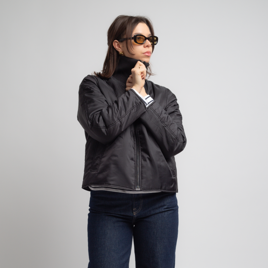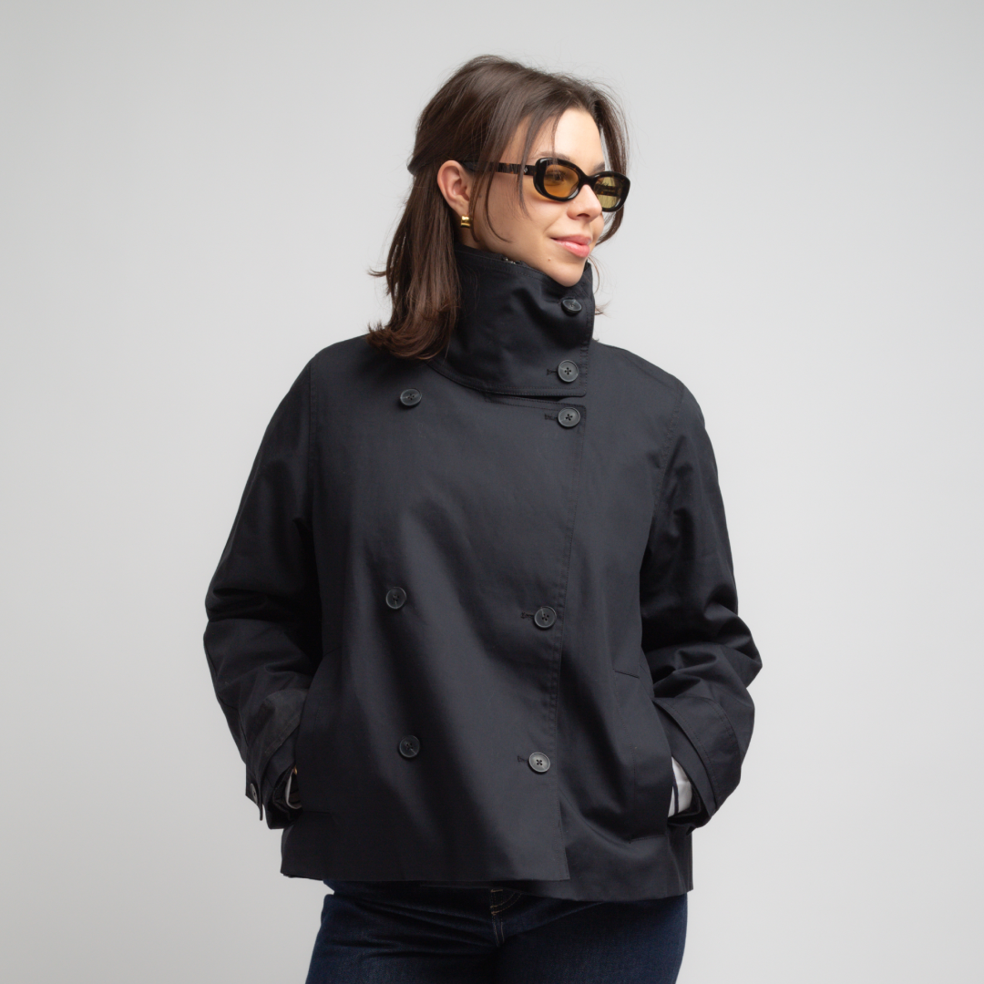 Kurtka 2 w 1, składająca się z krótkiego trencza oraz pikowanej, ocieplanej kurtki o klasycznym kroju i obniżonych ramionach. Warstwa zewnętrzna ma dwurzędowe zapięcie na guziki, a wewnętrzna kurtka zapinana jest na suwak. Trencz posiada regulowane mankiety z paskami zapinanymi na guziki oraz wysoki kołnierz, taki sam jak w kurtce wewnętrznej. Obie warstwy mają kieszenie w ramkach z przodu. Wewnętrzna kurtka jest dodatkowo ocieplana..