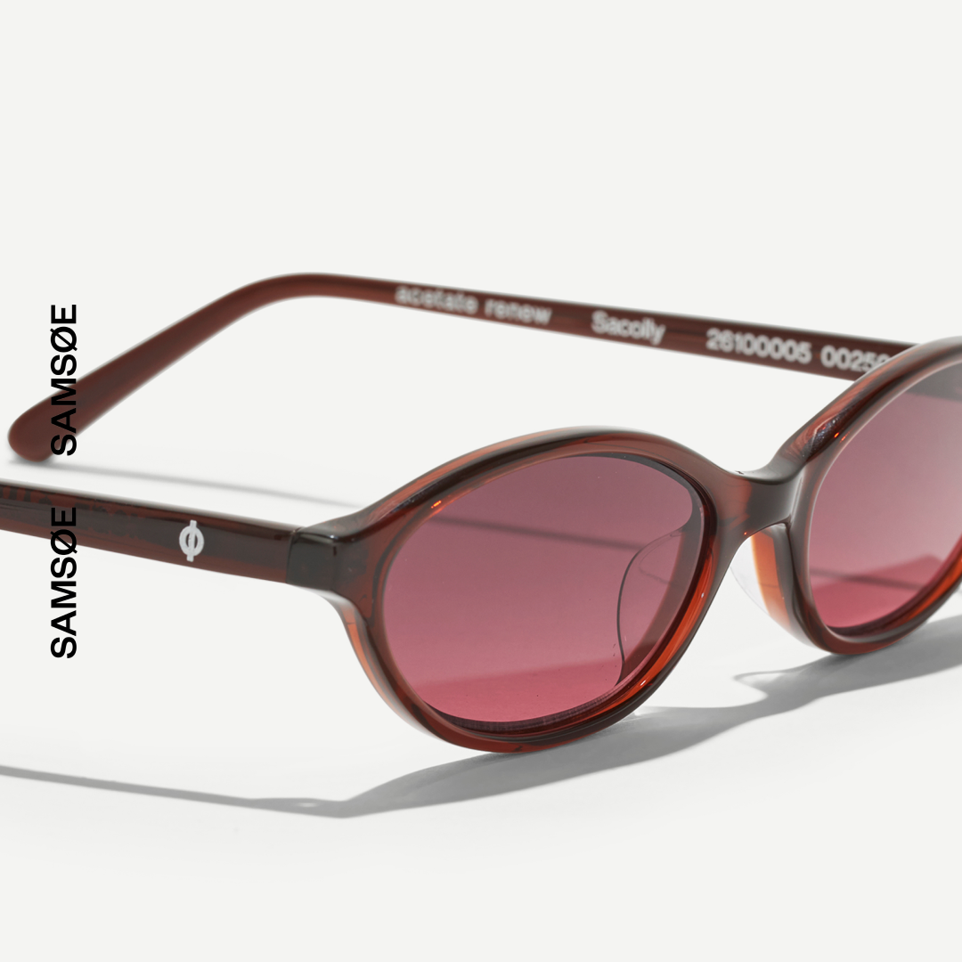 Owalne okulary przeciwsłoneczne o uniwersalnym, unisexowym charakterze, wyposażone w przyciemniane soczewki. Smukła oprawka została wykonana w 100% z materiału Acetate Renew, który łączy trwałość z bardziej odpowiedzialnym podejściem do produkcji. Na zausznikach znajduje się subtelne logo ø. W zestawie dołączone jest etui oraz ściereczka z brandingiem Samsøe Samsøe.