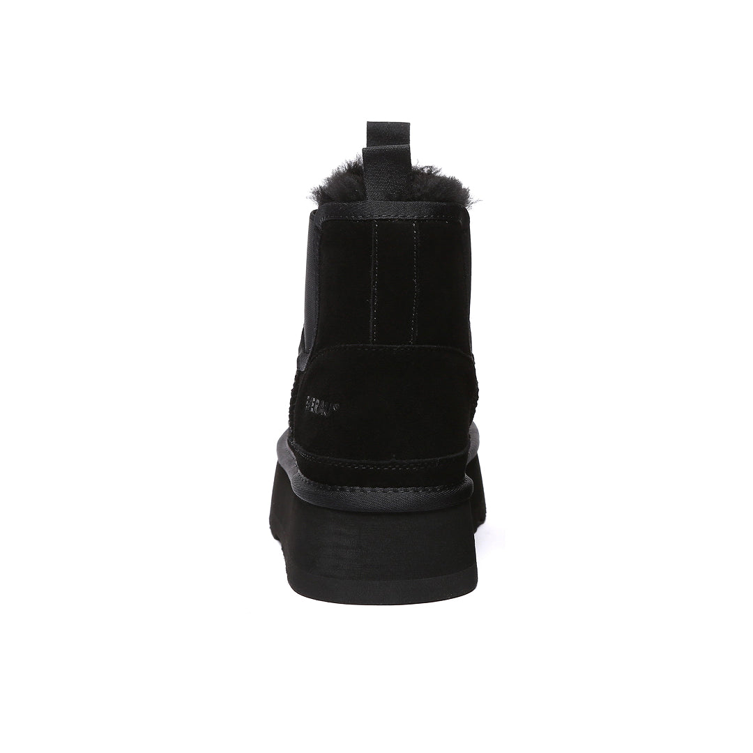 Shoveler Boots – połączenie uwielbianego stylu Chelsea z modną platformą, wykonane z trwałego zamszu bydlęcego, które gwarantuje elegancki i swobodny wygląd. Puszysta podszewka zwełnianego kożucha merino zapewnia ciepło w zimowe dni, a jednocześnie łączy funkcjonalność ze stylem.